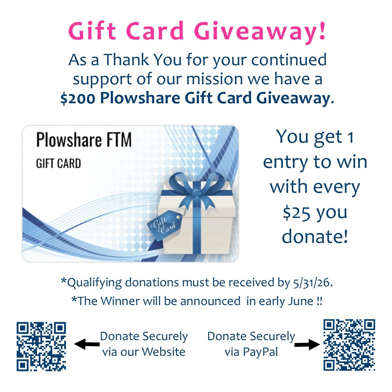 You can also make donations in our marketplace or make a check payable to Plowshare and mail it to: